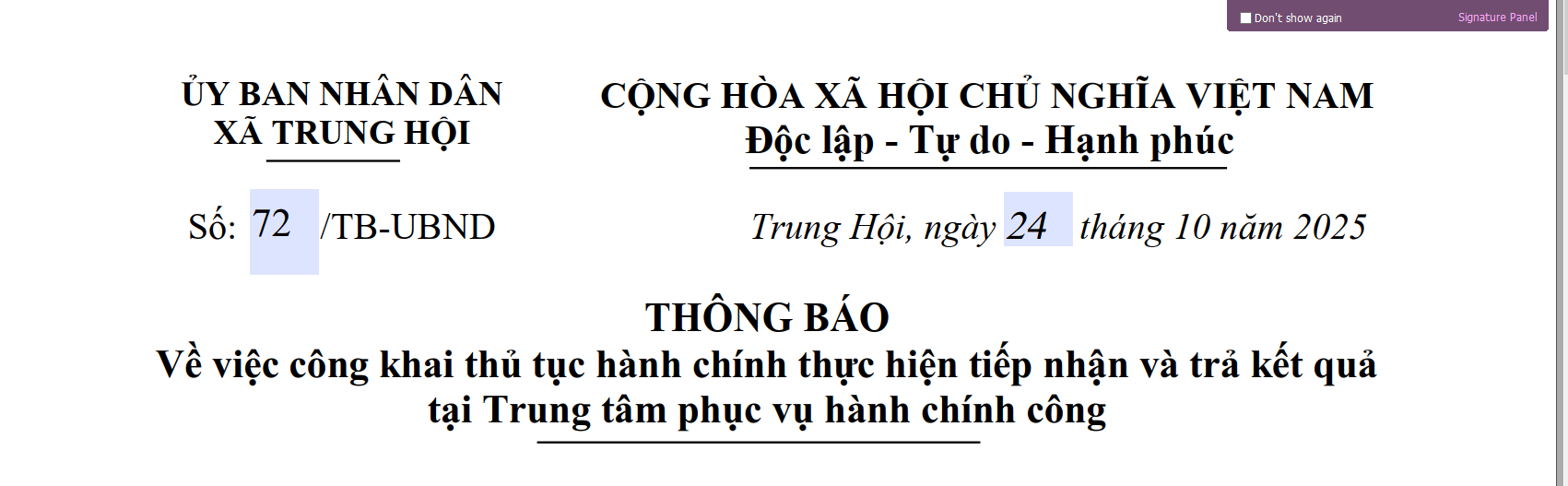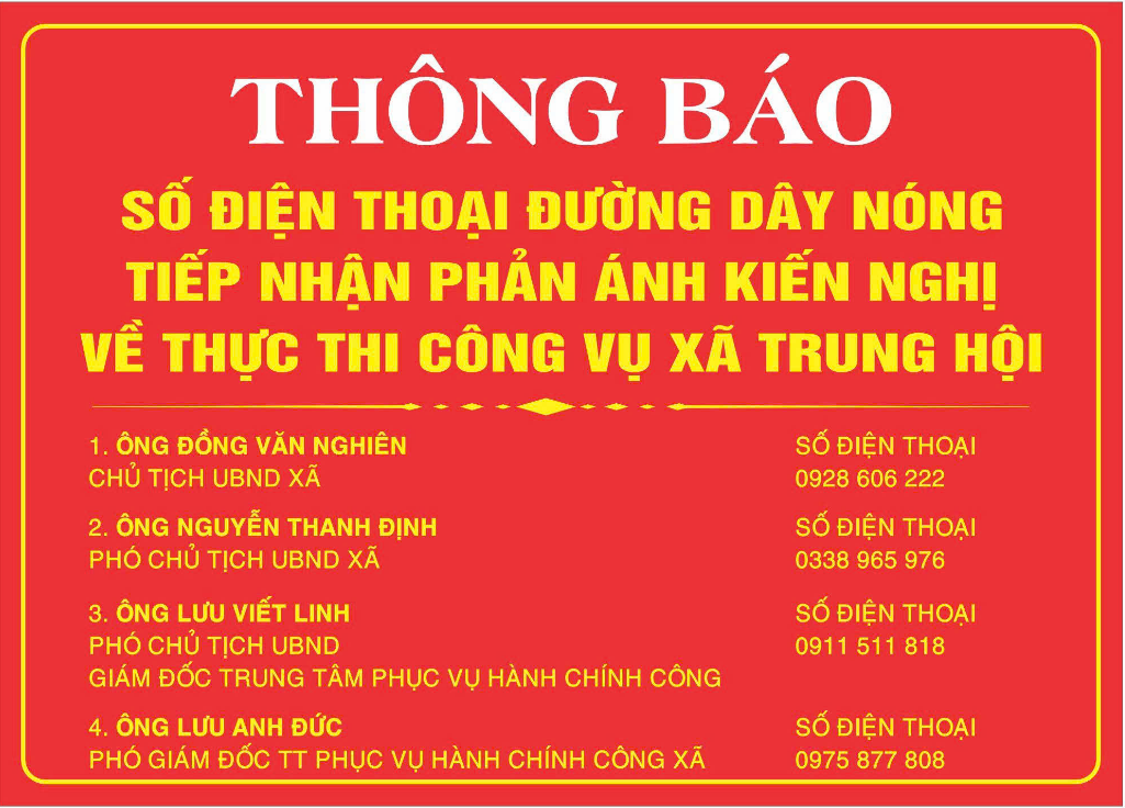 THÔNG BÁO Ngày bầu cử, thời gian, địa điểm bỏ phiếu bầu cử Đại biểu Quốc hội khóa XVI và bầu cử đại biểu Hội đồng nhân dân các cấp, nhiệm kỳ 2026 - 2031 trên địa bàn xã Trung Hội