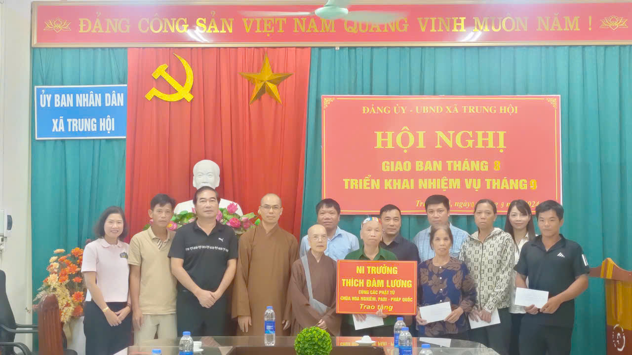 Sáng ngày 18/9/2024, Đảng ủy- chính quyền địa phương xã Trung Hội, huyện Định Hóa, tỉnh Thái Nguyên đã được tiếp đón đoàn thiện nguyện của Ni trưởng Thích Đàm Lương cùng các phật tử chùa Hoa Nghiêm,Pari- Pháp Quốc cùng đoàn thiện nguyện của Cán bộ và Nhân dân xã EA KHĂL, huyện EA H’LEO, tỉnh ĐĂK LĂK.