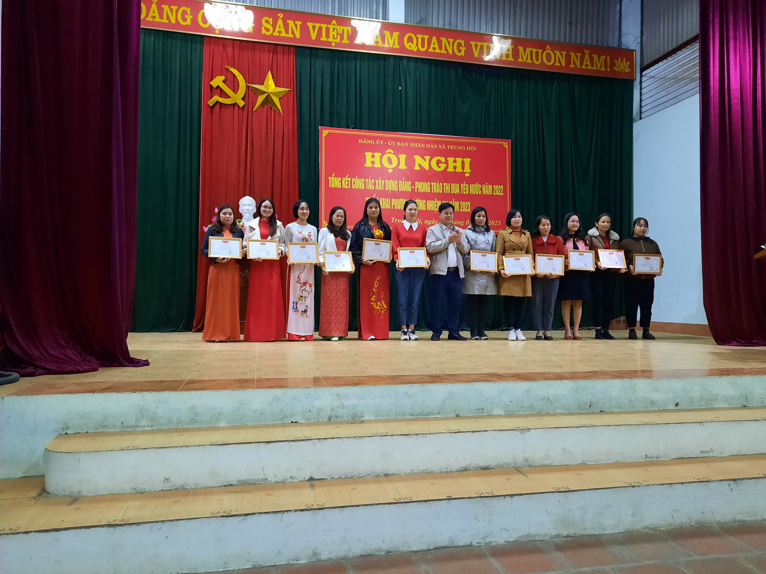 Lễ trao tặng Huy hiệu Đảng đợt 07/11/2023 và Tổng kết công tác xây dựng Đảng, tổng kết phong trào thi đua yêu nước năm 2022; triển khai phương hướng nhiệm vụ chính trị của Đảng bộ và phát động phong trào thi đua yêu nước năm 2023 xã Trung Hội